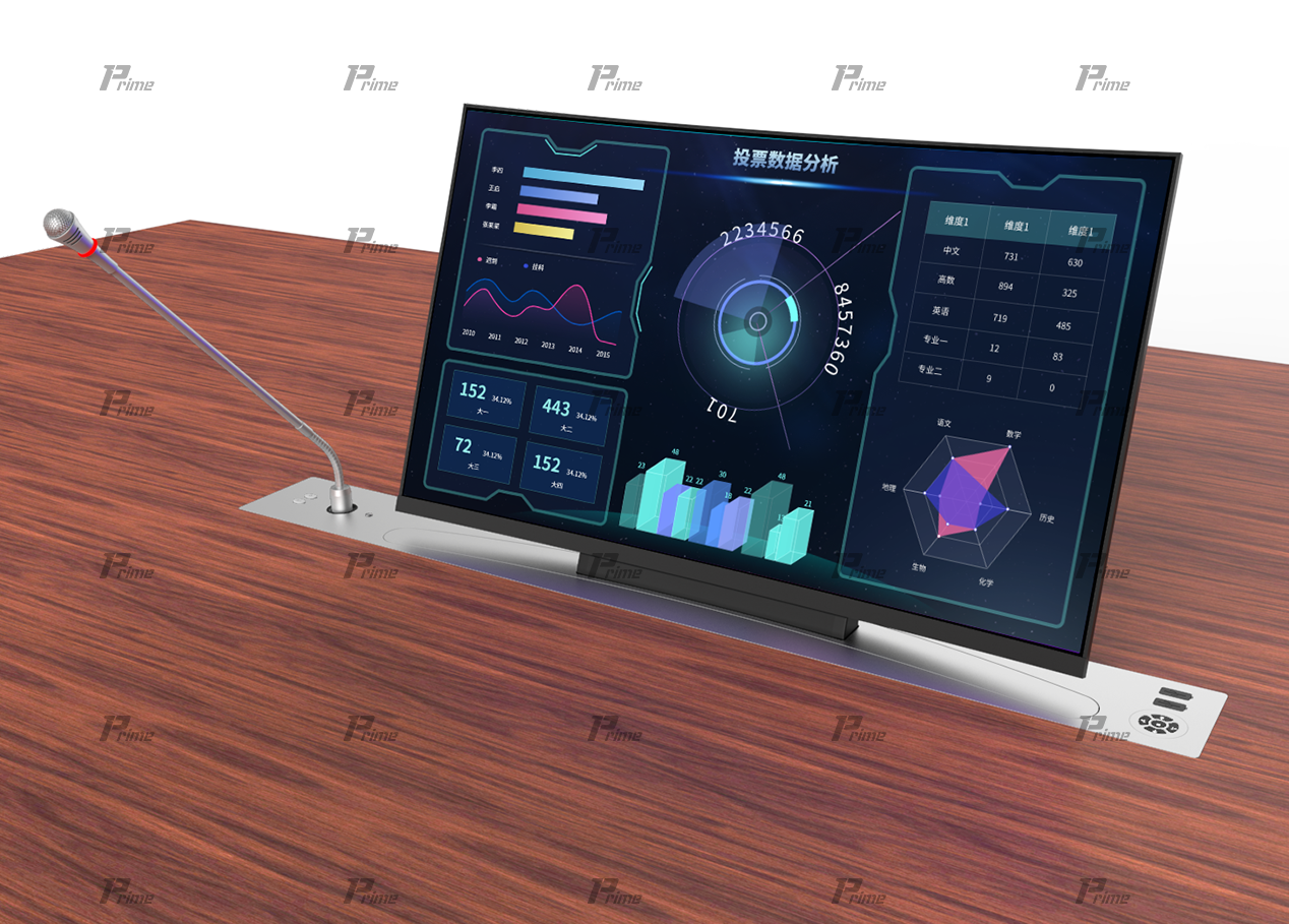 為了適應(yīng)多種辦公場(chǎng)所,我公司研發(fā)了曲面屏系列液晶升降無(wú)紙化會(huì)議終端產(chǎn)品。該系列產(chǎn)品多用于控制中心或控制臺(tái),27寸大屏,采用VA+級(jí)面板,1800R精妙曲率,屏幕弧度與眼球切合,使人眼到屏幕各方位的距離趨于一致,為您提供富有沉浸感的觀賞體驗(yàn)。擁有178°寬廣視角,不同的角度,一樣的靈犀觀感。三面微邊框設(shè)計(jì),輕松實(shí)現(xiàn)多屏無(wú)縫拼接,擺脫視野束縛。